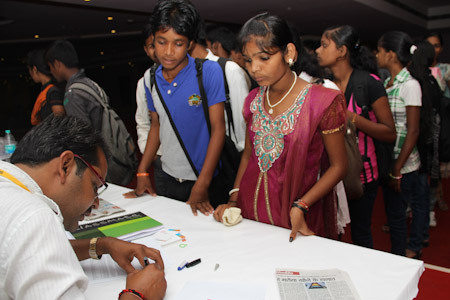 Arriving youth register for the conference