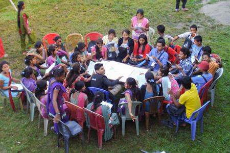 The arts presentations in the evening plenaries included musical performances, skits, and traditional Nepali dances. A month before the conference, the youth from each region had prepared songs based on the themes of the conference materials and these were sung joyously throughout their time together. The environment was such that all felt empowered to contribute. Even those who may have felt shy in the past freely shared insights and artistic presentations with their peers. All felt a deeper sense of purpose to work side by side, ready to return home and apply their insights toward progress in their communities.