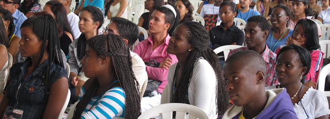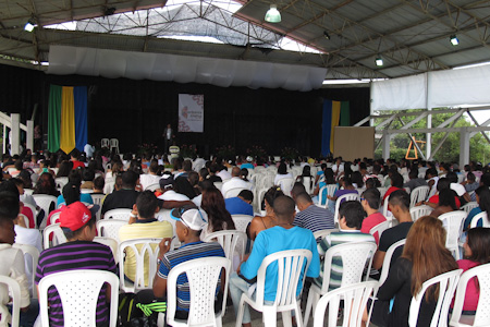 More than 400 youth from the Central and Pacific regions in Colombia gathered in a school located on the outskirts of Cali to participate in the first of the youth conferences held in South America, and one of the first in the world. At the start of the conference, Mr. Daniel Duhart––a Continental Counsellor who represented the Universal House of Justice at the event along with Counsellor Carmen Elisa de Sadeghian––conveyed to the participants the love of the House of Justice for the youth and shared the hope that the discussions during the conference could generate actions aimed at improving the condition of the world.