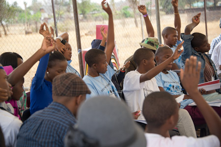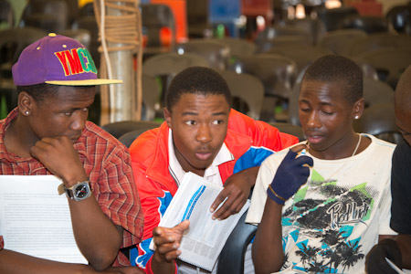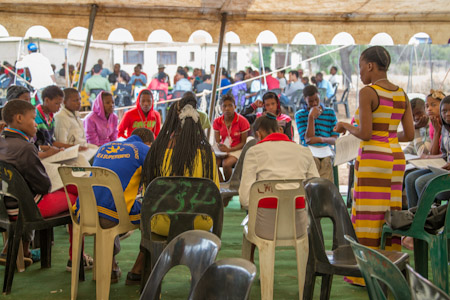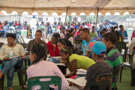 In their conversations, the participants strove to gain insights into how their efforts could play a decisive role in the advancement of their neighbourhoods and villages. They discussed how some social forces, such as consumerism, can hinder young people in their efforts to contribute to the transformation of society, while others can impel them forward, like a thirst for knowledge. A skit shared by a group from the city of Bloemfontein illustrated how older youth can help those younger than them, to overcome negative influences by channelling their energies in service to humanity. Participants advanced in their understanding that the will to make progress is strengthened when one belongs to a community that is united in that goal. One youth said: “I’m comforted by knowing that I’m not alone and other youth who came with me are going to offer their support and assistance … I will make a great effort to limit the influence of these negative forces by serving my community.”