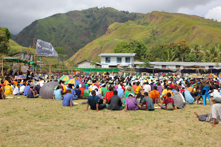 The valley of Aragip, the site of the second youth conference in Papua New Guinea, lies in the midst of the mountains in the remote interior of Milne Bay. The closest port of Sirisiri is a six-hour walk away, and the township of Alotau is another 10 hours away by boat and road transport. Yet almost 1,400 young people travelled for days to participate in the conference held on the grounds of a school in this valley from 20 to 22 September.