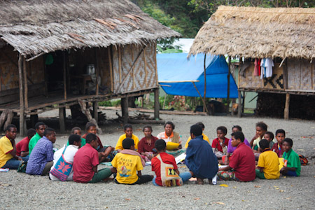 More than 1,000 community members—adults, younger youth, and children—took care of the conference logistics, ensuring that the multitude of participants had shelter, food, and all that was necessary for them to focus on their study of the conference materials. For days the local friends had worked together erecting makeshift sapling supported canvas shelters, a stage, pit latrines, and a mess hall for serving food. Villagers in and around Aragip emptied their gardens, filling up one of the storerooms at the school with produce.