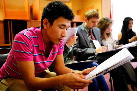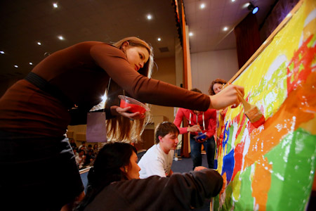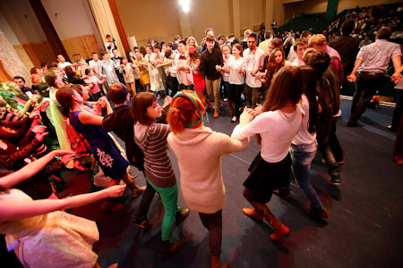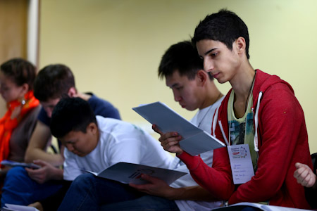 The use of the arts enhanced the beauty of the gathering while illustrating many of the youth’s lofty ideals. A group from Novosibirsk presented a colourful traditional kalinka malinka dance, while some friends from Irkutsk painted a picture of the world together on stage. The atmosphere was enriched by the deep notes of the violin and homus, a mouth harp associated with the Sakha region that is played in many cultures all over the globe.