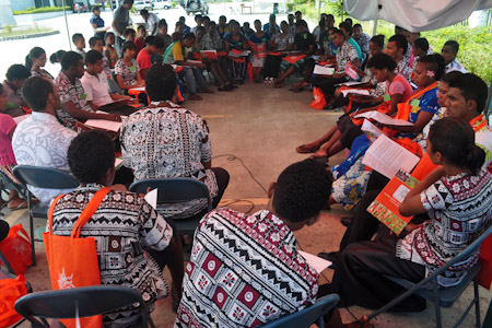 A day earlier, more than 500 youth from six countries—the Caroline Islands, Mariana Islands, Marshall Islands, Tuvalu Islands, Hawaii, and Fiji—arrived at the venue with radiant faces, greeting one another with warm enthusiasm. Mingling in their happy exchanges could be heard the diverse accents of Bislama, Japanese, Tagalog, and Yapese.