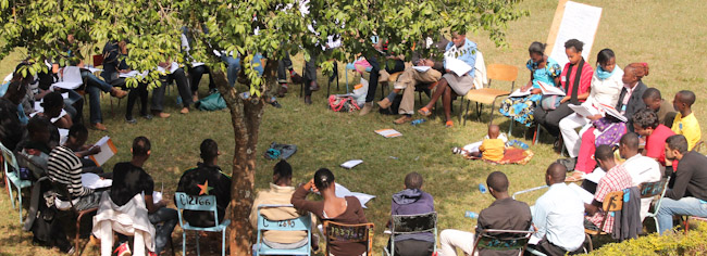 • Small workshop groups meet outside to consult on how they can assist those younger than themselves to contribute to the well-being of their communities