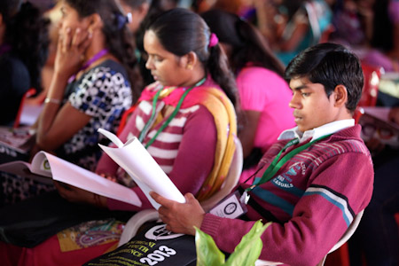 From the moment the participants entered through the school gates, decorated with marigolds, its walkways lined with colourful rangoli, the atmosphere reflected the joy, enthusiasm and consecration of the youth from the region, many of whom had prepared for the conference months in advance. The morning prayers in Hindi and Marathi, the soul stirring melodies of the Words of God created a reverent atmosphere. The collective singing during breaks, the late night discussions with friends on the possibilities now open before them to contribute meaningfully to change, the hope transformed into determination to walk with others on a path of service throughout their lifetime, contributed to an environment in which friendships were easily forged and strengthened. It was clearly evident that a vision of the society-building powers inherent in Bahá’u’lláh’s Teachings, and the role that young people can play in its realization, was undoubtedly formed.