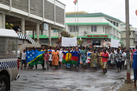 A pre-conference parade through the streets of Port-Vila leading to the main venue where over 2,000 people gathered for an opening ceremony