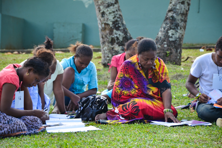 Travelling in planes, vehicles, on ships, and by foot, some 1,650 young people from French Polynesia, New Caledonia, Solomon Islands, and Vanuatu eagerly arrived, many over a week in advance, for the historic youth conference in Port-Vila, Vanuatu, held from 17 to 19 August. From Tanna, in southern Vanuatu, where the Universal House of Justice recently called for the building of one of the first local Houses of Worship in the world, three groups of 200 passengers—a significant percentage of all the youth living on Tanna—arrived in three separate ocean voyages. Two separate flights from the Solomon Islands, with 70 and 30 participants respectively, arrived three days apart. And the day before the conference, 300 youth from the islands of Santo and Malakula, in northern Vanuatu, docked in Port-Vila’s harbour, after a 26-hour journey on a cargo ship.