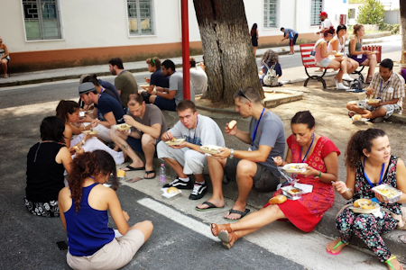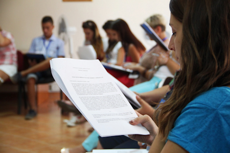 During one of the workshop sessions, the participants analysed how supporting and encouraging one another in all aspects of life is essential to forming true friendships and, that evening, many of the artistic presentations shared during the plenary session focused on this concept. The youth from Croatia presented a skit entitled “A fountain of selfless support” to present their insights about this topic, in which each participant represented a spout of water portraying a quality of true friendship. One of the participants said, “Some examples of what we can do as friends include studying together and encouraging each other... We can also help each other to look for the good things in others, and not focus on their shortcomings.”